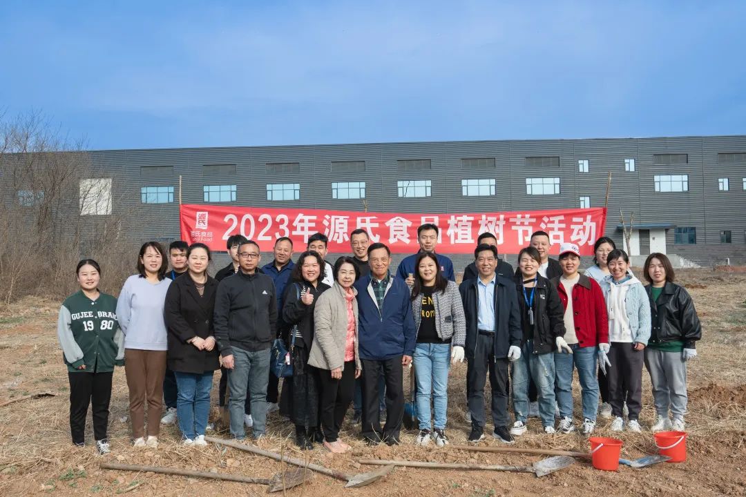 2023-03-15近日春光獨(dú)好,沐浴著朝陽與晨光,3月10日上午,源氏食品董事長源而細(xì)先生、夫人梁煥儀女士同執(zhí)行董事譚寶珠女士及公司各級領(lǐng)導(dǎo),一同來到公司園區(qū)南側(cè),在這片還未開墾的土地上種下60余棵桃樹…