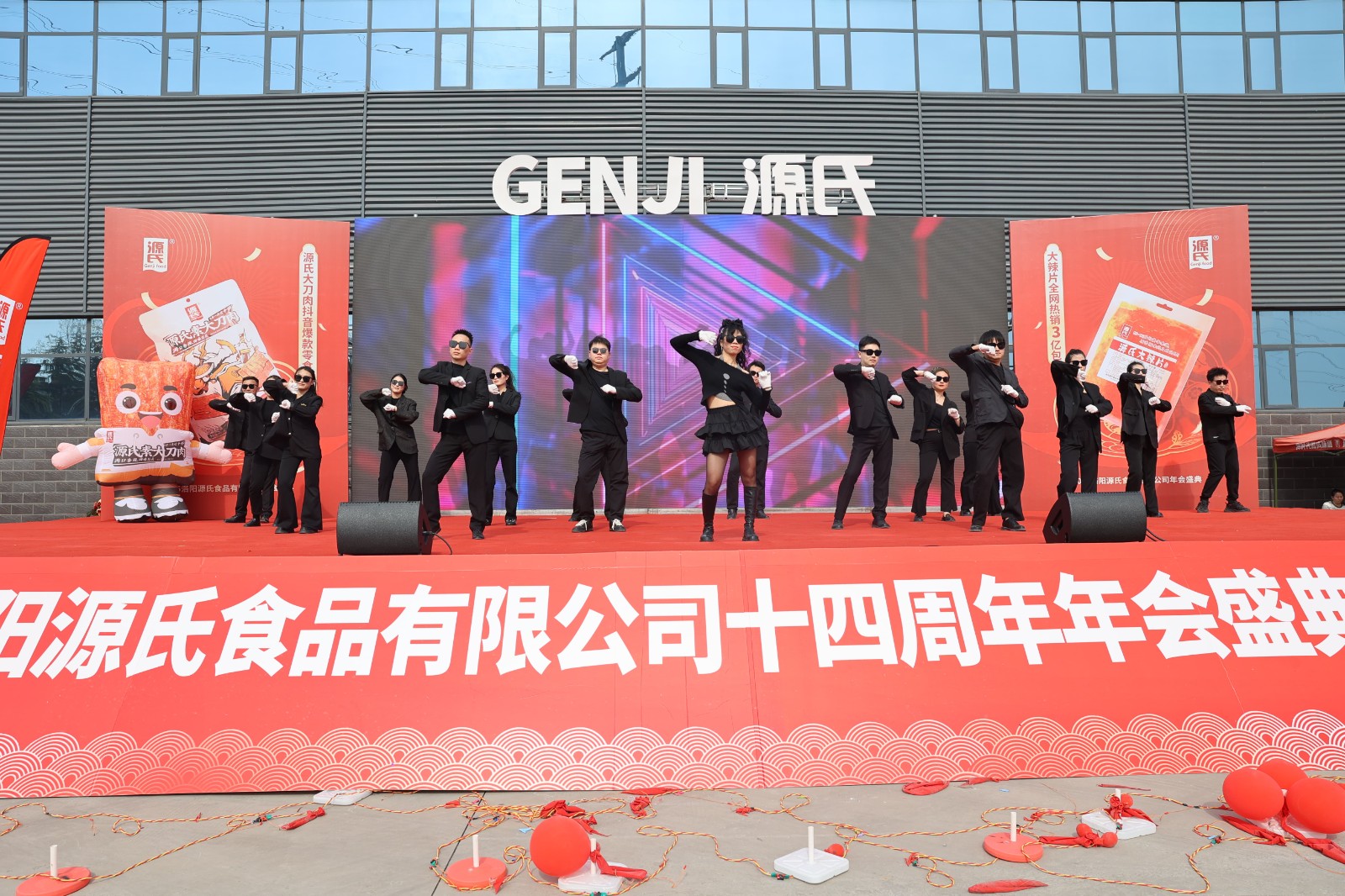 下午1點(diǎn)18分,年會(huì)以氣勢(shì)磅礴的《醒獅舞》震撼開場(chǎng)。兩只金紅相間的醒獅在鼓點(diǎn)聲中躍上舞臺(tái),午后耀眼的陽(yáng)光為獅身鍍上一層璀璨金邊。年輕的表演者們技法純熟,獅目靈動(dòng),鬃毛飛揚(yáng),騰挪跳躍間盡顯雄渾氣魄,寓意源氏食品如雄獅般昂首闊步、勇毅前行。