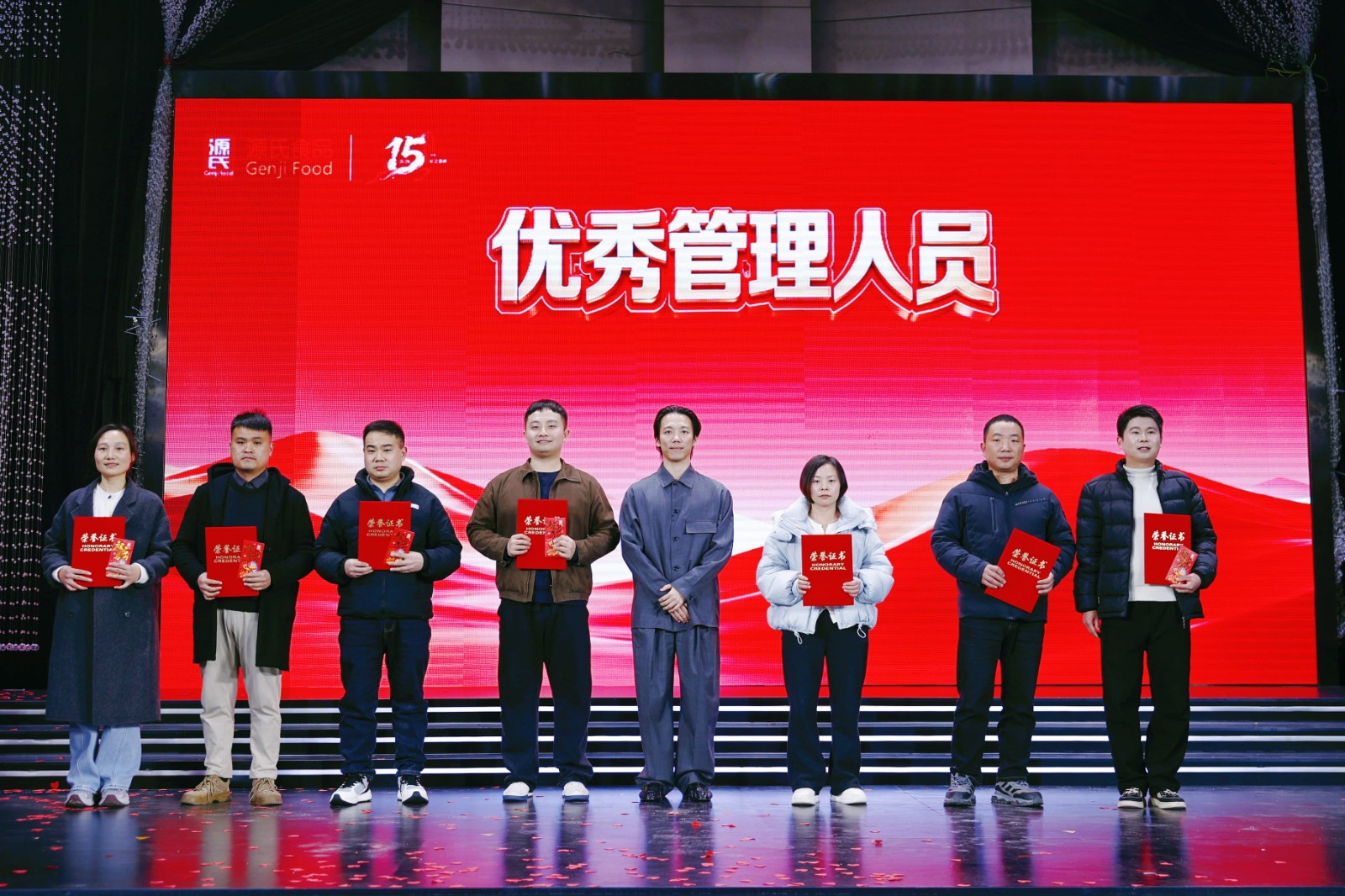 執(zhí)行董事譚寶珠女士致祝酒詞,全體董事會成員及領(lǐng)導(dǎo)層共同舉杯,敬十五年風(fēng)雨同舟,敬每一份堅守與熱愛,敬源氏璀璨未來。推杯換盞間,是同行的溫暖,是攜手的期許,更是共赴新程的堅定信念。十五載風(fēng)雨兼程,源氏人以匠心守初心,以實干筑夢想;新征程步履不停,源氏人將以龍馬精神再啟新章,聚焦品質(zhì)創(chuàng)新,深耕市場布局,踐行社會責(zé)任,讓源氏的麻辣匠心味暖中國,讓中國味道走向世界。