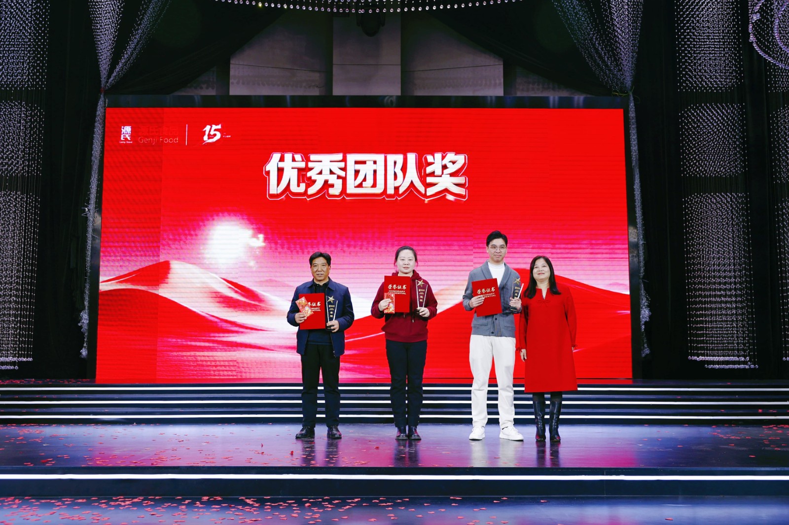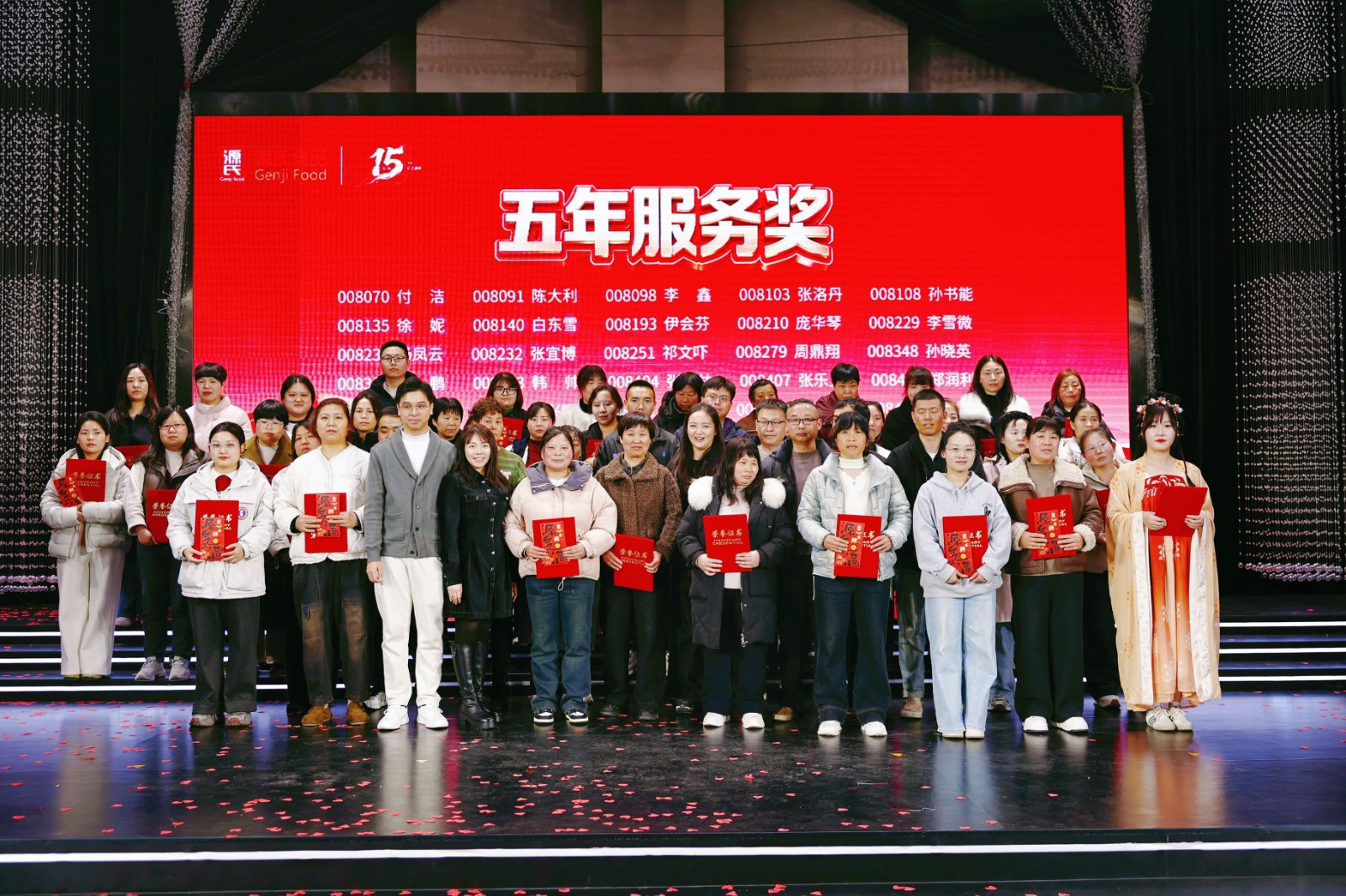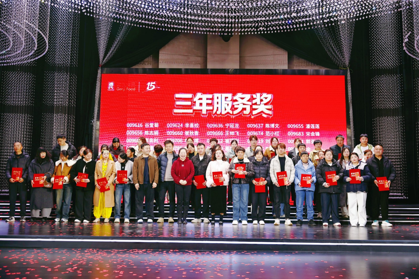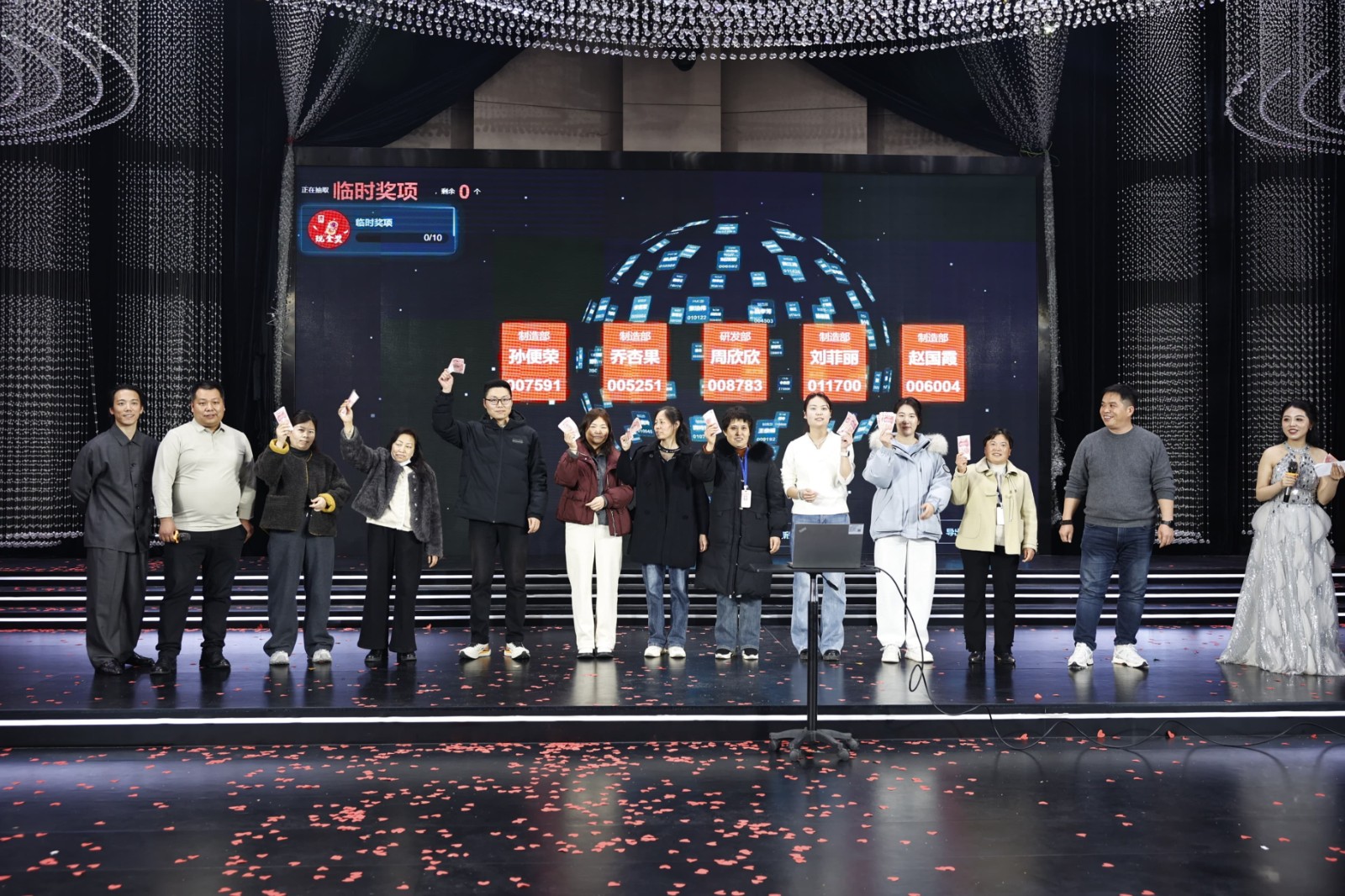 海爾冰箱、洗衣機、熱水器、電飯煲……從大宗家電到實用家居,公司為大家貼心考慮,設(shè)立六等獎至一等獎層層遞進(jìn),獎品及獎金池共計70余萬元。此外,本次年會特設(shè)立15周年特別抽獎環(huán)節(jié),為不同工齡的員工送上專屬福利,圍桌獎、現(xiàn)場合作伙伴傾情“加碼”的數(shù)萬元現(xiàn)金大獎讓幸運覆蓋全場,歡聲笑語間,傳遞著源氏大家庭的溫暖與關(guān)懷。節(jié)目表演獎的頒發(fā),更致敬每一位臺前幕后的表演者,讓熱愛與付出皆有回響。