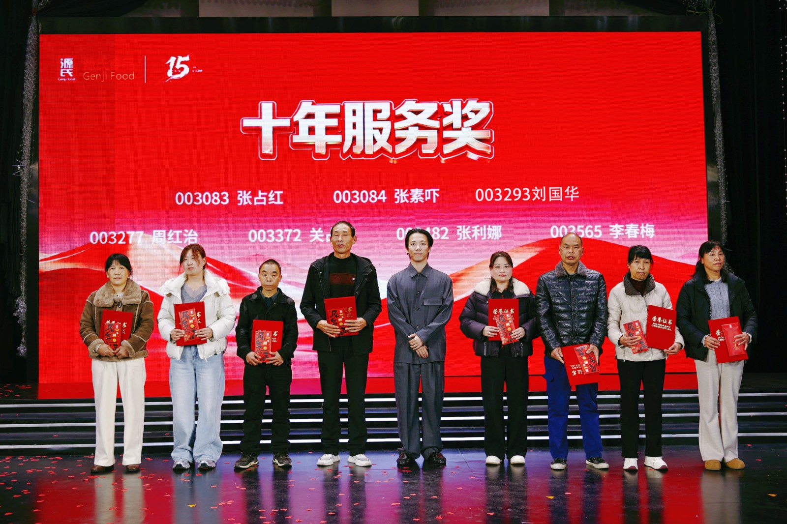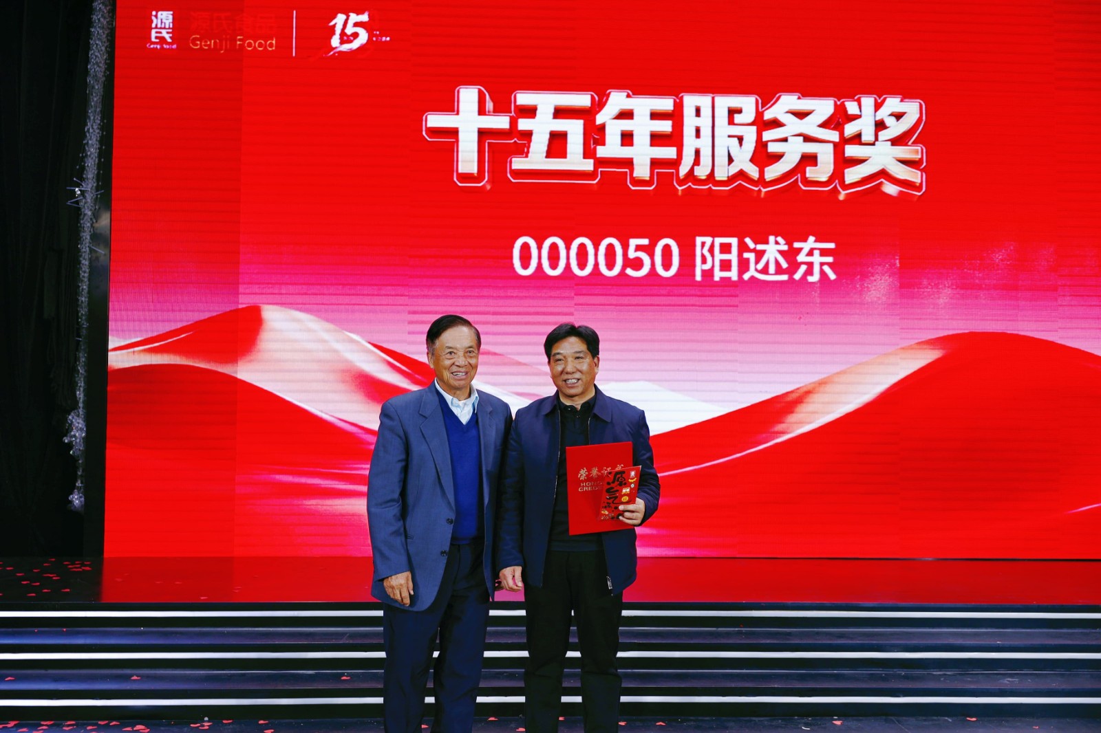 盛典現(xiàn)場對公司新銳獎、優(yōu) 秀員工獎、優(yōu) 秀管理干部獎、優(yōu) 秀團(tuán)隊獎等多個獎項進(jìn)行表彰,為3年、5年、10年乃至15年資 深員工頒發(fā)服務(wù)獎,品控部陽述東經(jīng)理獲頒專屬的十五年服務(wù)獎。每一份榮譽都是對源氏人實干與堅守的肯定。