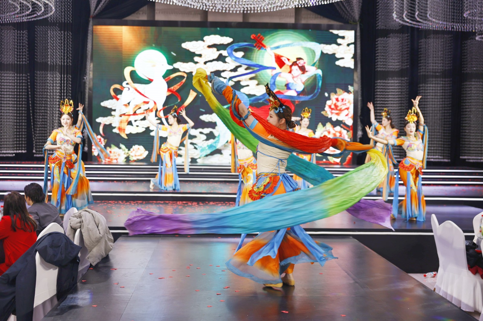 員工自編自演的節(jié)目輪番登場,舞蹈《歡樂的跳吧》《好運全來》點燃現(xiàn)場氛圍,越調(diào)《四千歲你莫要羞愧難當(dāng)》、豫劇《朝陽溝》盡顯傳統(tǒng)文化魅力,合唱《水手》唱出奮斗初心,相聲《馬年新說》融合傳統(tǒng)與新潮,情景劇《我要暴富》詼諧幽默,演繹電商賣貨的感染力,朗誦《我們的擔(dān)當(dāng)》詮釋源氏人的責(zé)任與堅守。敦煌一夢、我的新衣等友情表演更將盛典氛圍推向高 潮,臺下掌聲雷動,臺上星光閃耀,每一個節(jié)目都是源氏人多才多藝、凝心聚力的生動體現(xiàn)。