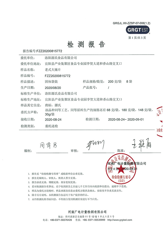 老式大辣片外檢 發(fā)布時(shí)間:2021-03-02作者:來(lái)源:洛陽(yáng)源氏食品有限公司點(diǎn)擊:6288 上一篇:食品安全管理體系認(rèn)證證書(shū) 下一篇:營(yíng)業(yè)執(zhí)照 分享到:0 用手機(jī)看 拍下二維碼,信息隨身看 試試用微信掃一掃,在你手機(jī)上繼續(xù)觀看此頁(yè)面。