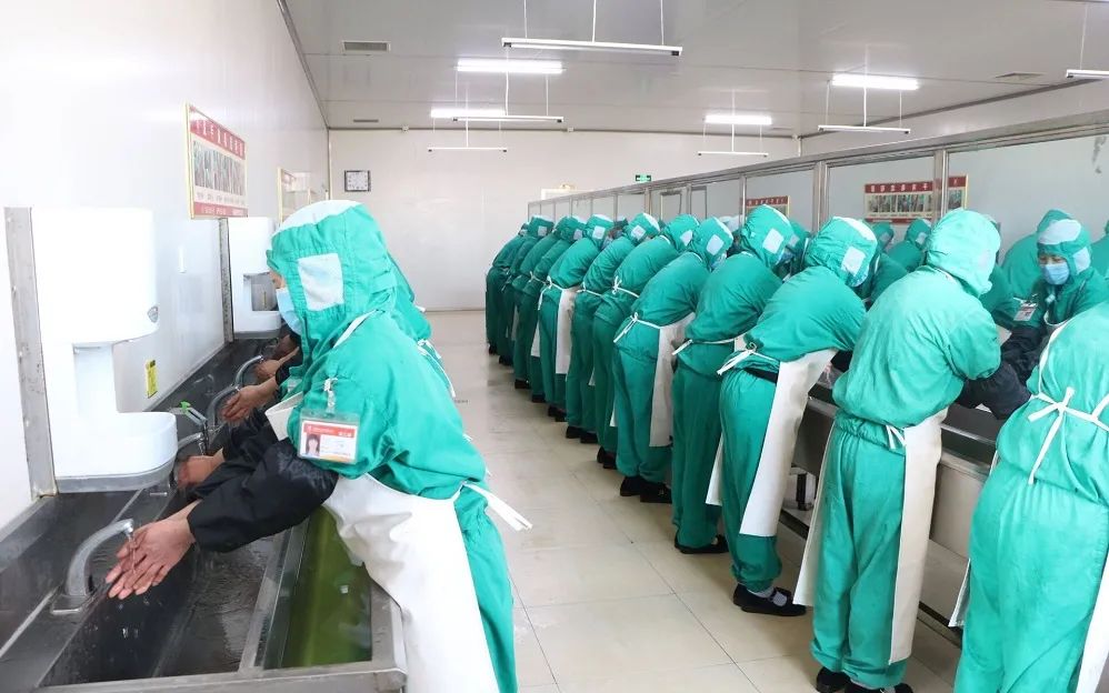 同時(shí),我們用***嚴(yán)格的工作標(biāo)準(zhǔn),***嚴(yán)謹(jǐn)?shù)墓に嚵鞒?,為消費(fèi)者提供放心、安全、健康的食品。全副武裝、30s清晰消毒、2重風(fēng)淋除塵是進(jìn)入車間的必須程序。